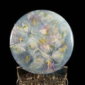 Sculpture for Photograph, Materials: Ice, Aqua Spirulina, Bouquet Leftovers, Glass Candy Dish. Created August 2, 2022.