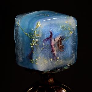Sculpture for Photograph, Materials: Ice, Bouquet Leftovers, Aqua Spirulina, Amethyst Carnival Glass. Created November 3, 2022.