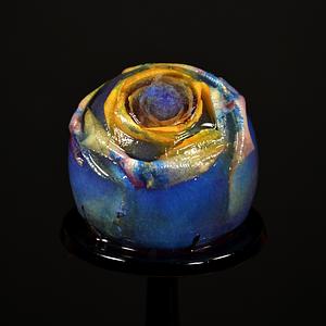 Sculpture for Photograph, Materials: Ice, Rose, Butterfly Pea Powder, Brown Stemware. Created February 1, 2021.