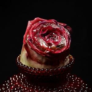 Sculpture for Photograph, Materials: Ice, Red Rose, Ruby Hobnail Glass. Created February 8th, 2021.