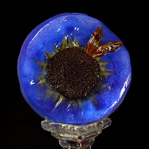 Sculpture for Photograph, Materials: Ice, Organic Food Coloring, Sunflower, Glass Candy Dish. Created August 24th, 2022.