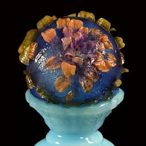 Sculpture for Photograph, Materials: Ice, Zinnia, Aqua Spirulina, Frosted Blue Egg Cup. Created September 10th, 2021.